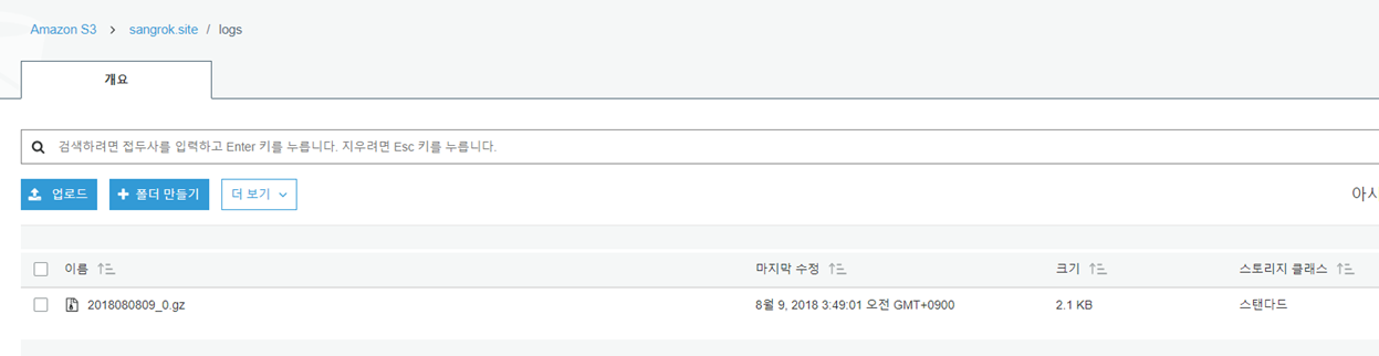 지정한 S3 버킷에 수집된 로그가 아래와 같이 gzip 형식으로 저장되는 것을 확인할 수 있습니다.