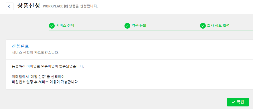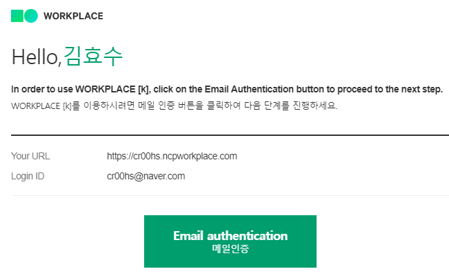 *관리자 아이디에 입력한 주소로 WORKPLACE 로그인과 비밀번호 설정, WORKPLACE 공지 알림 메일 수신으로 사용